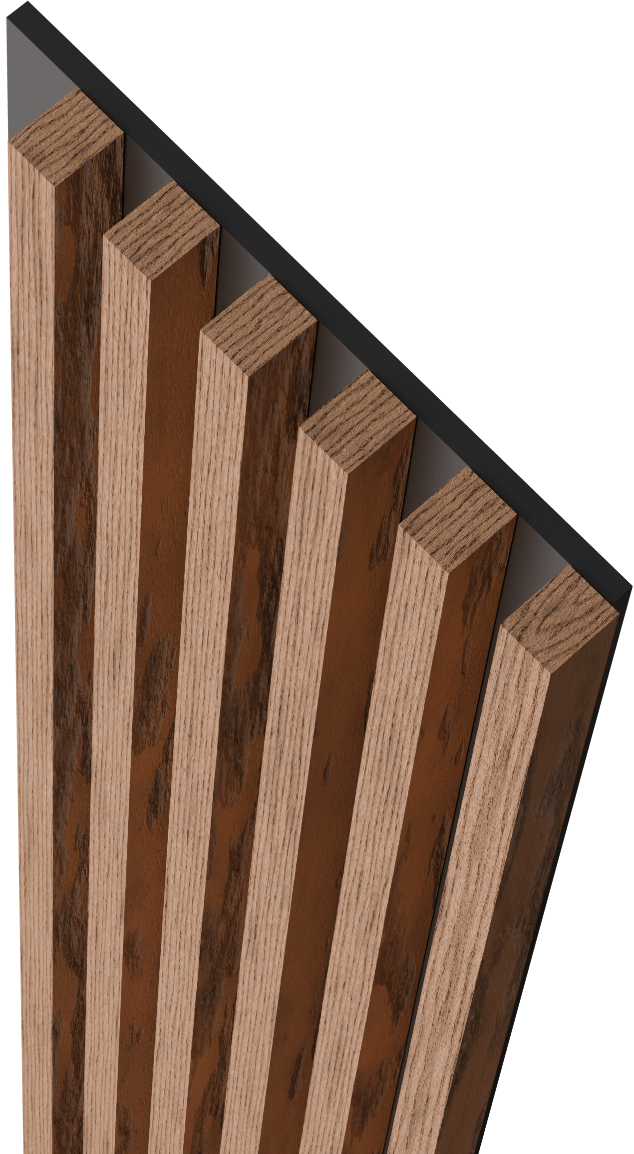 Die regelmäßige Anordnung der Lamellen auf der Unterlage erfüllt die Funktion eines Diffusors, der Schallwellen streut und Reflexionen von festen Oberflächen minimiert.